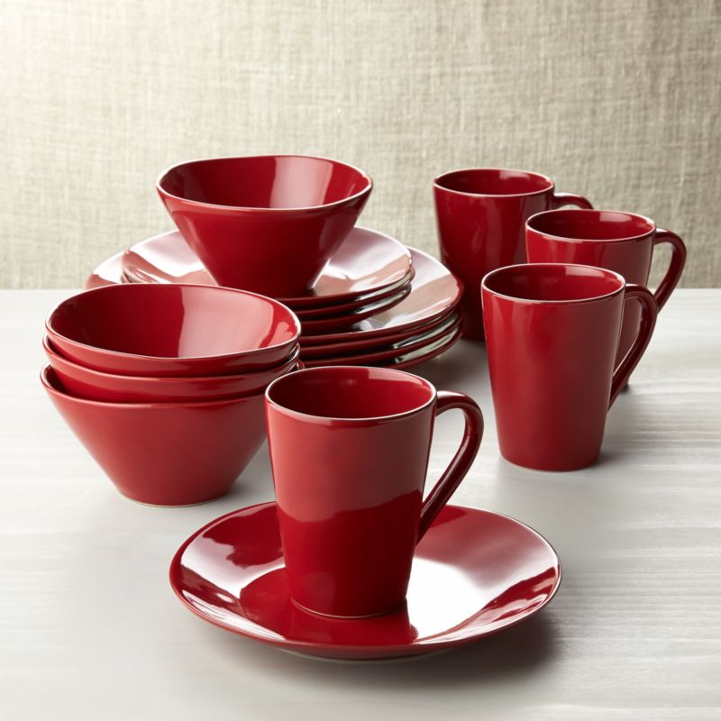 Marin Red 16-Piece Dinnerware Set + Reviews Crate and Barrel
